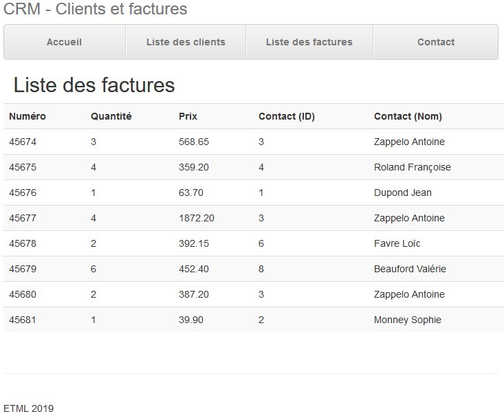 Le but de l’exercice est d’afficher les informations de la page « Liste des factures ». Le rendu devra ressembler à cette copie d’écran :