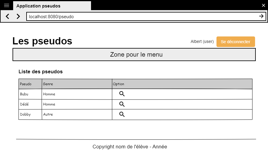 Depuis la page d’accueil, en cliquant sur la loupe (détail) d’un pseudo, un lien nous amène sur la fiche détaillée du pseudo.