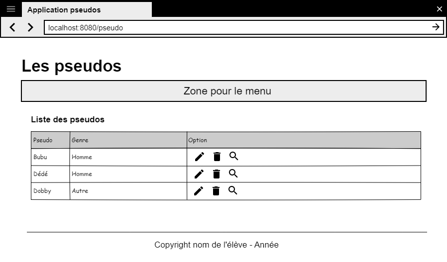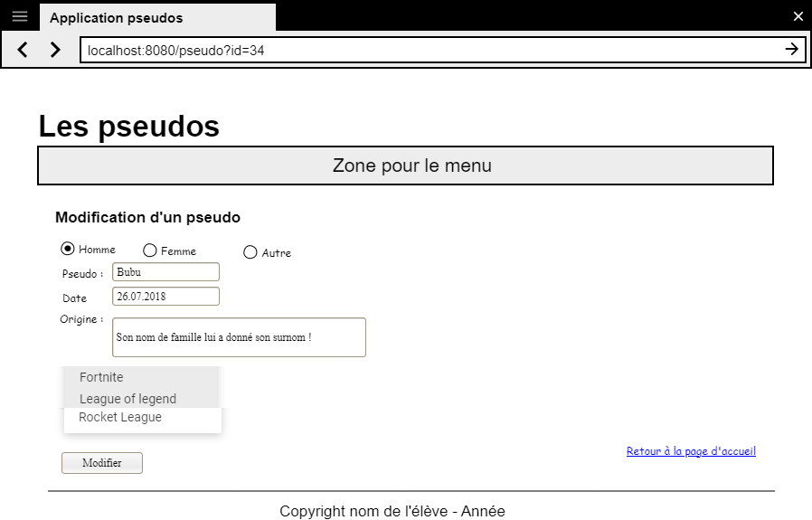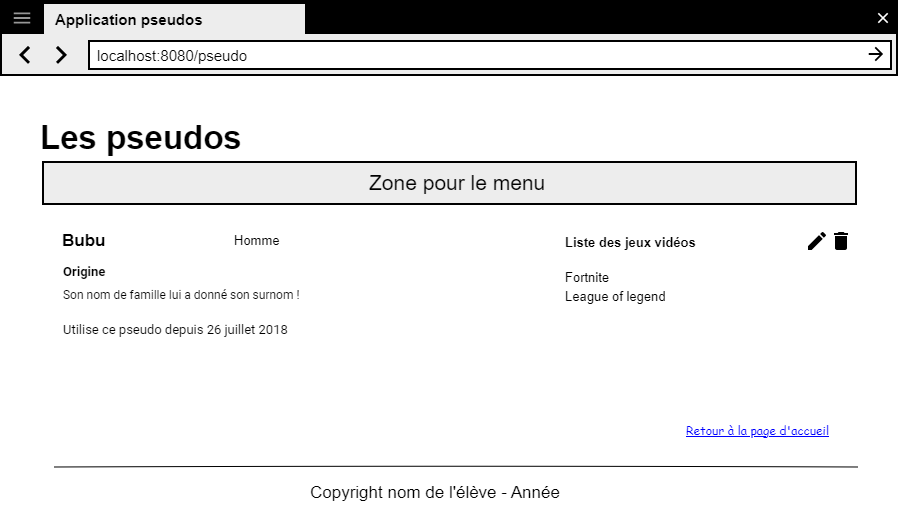 Il s’agit de mettre en place une petite application permettant de recenser les surnoms dans les jeux vidéos.