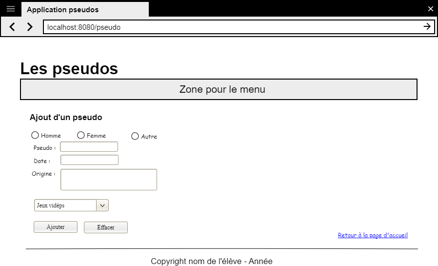 Créer une page addPseudo.php qui contiendra un formulaire avec les mêmes champs que sur la maquette.