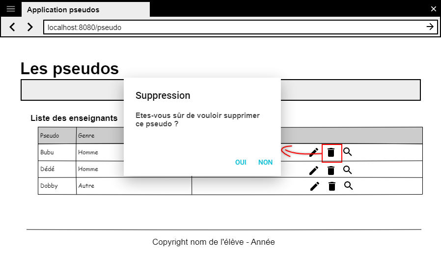 En cliquant sur la corbeille, il est possible de supprimer le pseudo voulu, mais seulement après confirmation. A quoi faut-il faire attention lors de la suppression ?