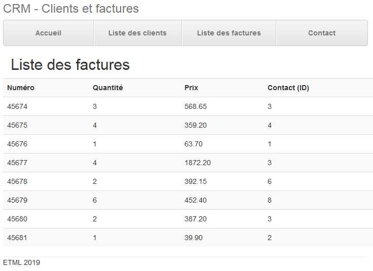 Le but de l’exercice est d’afficher les informations de la page « Liste des factures ». Le rendu devra ressembler à cette copie d’écran :