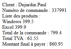 Reprendre l’exercice pour passer des commandes et effectuer un texte unitaire pour être sûr que la TVA est correctement calculée.